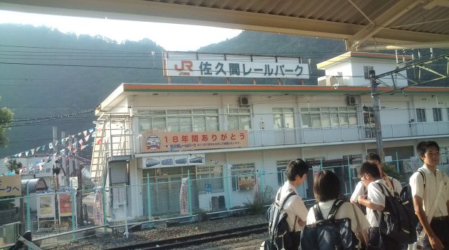 仕事柄いろいろな土地にお邪魔して、本校の説明をすることが多いのですが、静岡県のとある高校にお伺いしたときに1枚の写真を撮影しました。帰りのホームから撮影しましたが、「佐久間レールパーク」という看板があります。JRの運営している博物館で、明日(11月1日)で閉園になります。